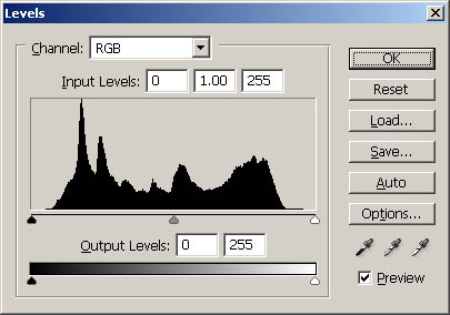 at the histogram. IMAGE>ADJUSTMENTS>LEVELS (Ctrl-L)