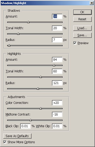 a strong image. CS has a great new shadow and highlight dialog box. It gives