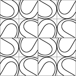 Using the crop tool, hold down the shift key to constrain the crop to a perfect square. You can move and rotate the crop. Hit enter to make the crop. Important!...Make sure each side of the box has a line touching it. Select all and stroke an inside line. Now copy this layer using CTRL>J 3 more times... increase the canvas 200 percent in the horizontal and vertical dimensions, anchoring the canvas in the upper left.