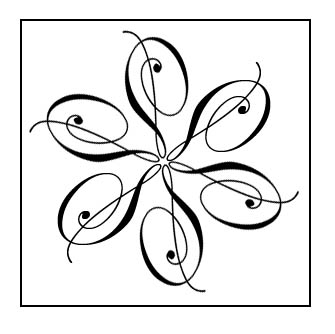 As a designer, you become much more than an admirer. Take a Letter form... In this case I chose Edwardian Script at 120 pt. copy and paste it 6 times. Rotate each unit (Edit>Transform>Rotate... in the angle box on the options bar type in multiples of 60 degrees.)