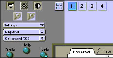 5. In the top of the main window on the right side, click the blue box with the number that corresponds to the negative to be scanned. Remember, the first negative in is #1 on the display.